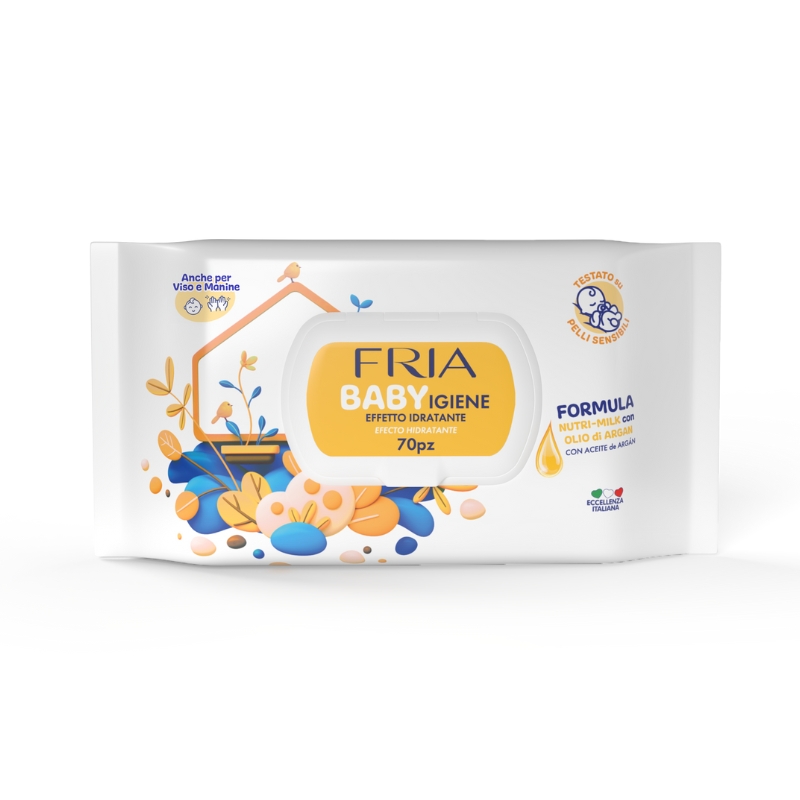 FRIA Salviette Baby Igiene per Neonati nascono dalla ricerca di un prodotto di qualità, che soddisfi le esigenze della delicata epidermide dei neonati.